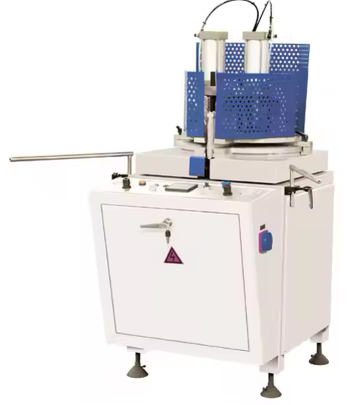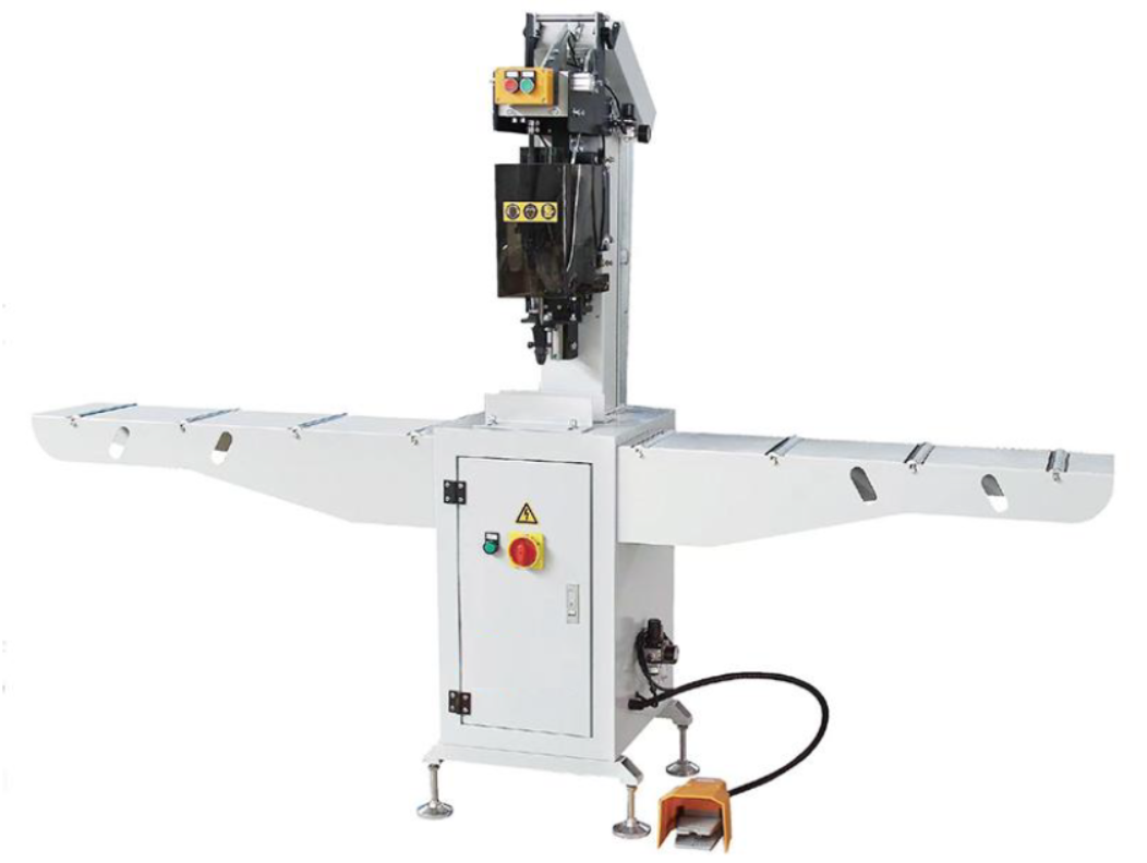 Used for cutting and chamfering plastic doors and windows, to ensure the beautiful glass line pressing and flat-fell seam. * Automatic 45-degree cutting of U-PVC glass bead profiles, equipped with glass pressing die, can cut two glazing beads at the same time, with high production efficiency. * It can be tilt pressing, and can be pressed at any position according to the curvature of glass pressing line, and a specially designed cutting fixture is adopted to ensure stable positioning. * With the adjustable batten pad, it is not necessary to replace the pad when changing the profile, which is helpful to reduce the production preparation period of doors and windows * Equipped with tiny adjusting device, with which you can adjust the tightness degree after installing the glazing bead according to need. * Equipped with a high-grade sizing frame,the glass bead can be processed according to the required size to ensure accurate cutting. Power supply 380V/50HZ Air pressure 0.5-0.8MPa Rotary speed 2800r/min Gas consumption 20l/min Length processing range 320-1800mm Cutting width 100mm Cutting height φ230×200×φ30mm Overall dimensions 2550*1400*1350mm